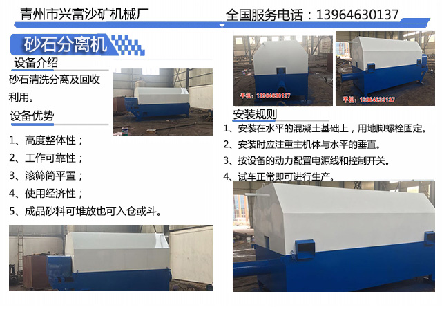 沙石分離機的工作原理:鏟車將毛料鏟入上料斗,經傳送帶傳入轉篩 轉篩將毛料分離 沙子經出料口傳到沙稡,石子經出料口傳到石子稡。工作完成。